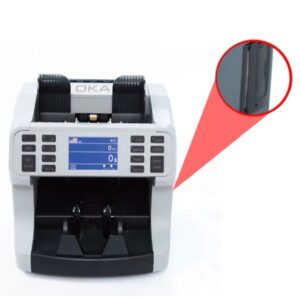 ماكينة عدّ وفرز العملات OKA لعدّ وفرز العملات المختلفة وكشف التزوير (الدولار – اليورو – اليوان الصيني – الليرة التركية) ويمكن إضافة أي عملة أخرى حسب احتياجك موديل OKA-MIX104
