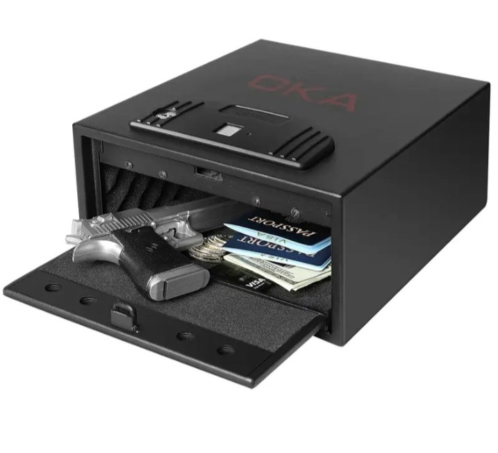 خزنة نقود ديجيتال إلكترونية من OKA مقاومة للحريق والسرقة بقفل كومبينيشن وبصمة (قفل بيومتري) – مقاس 20×30.4×25.4 سم / وزن 7.8 كجم – موديل 55B30