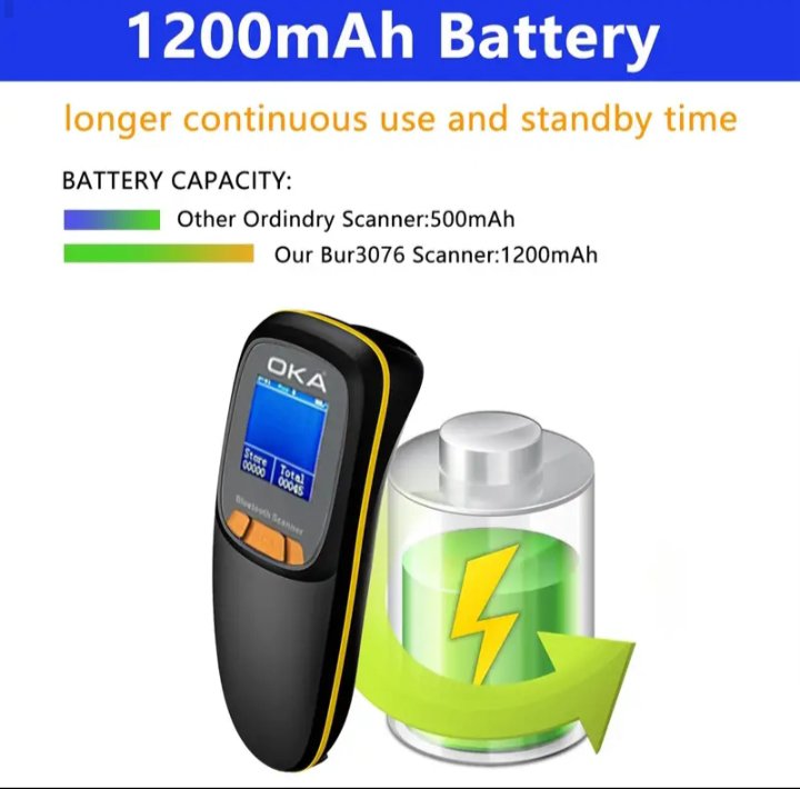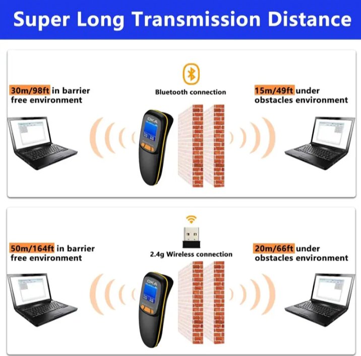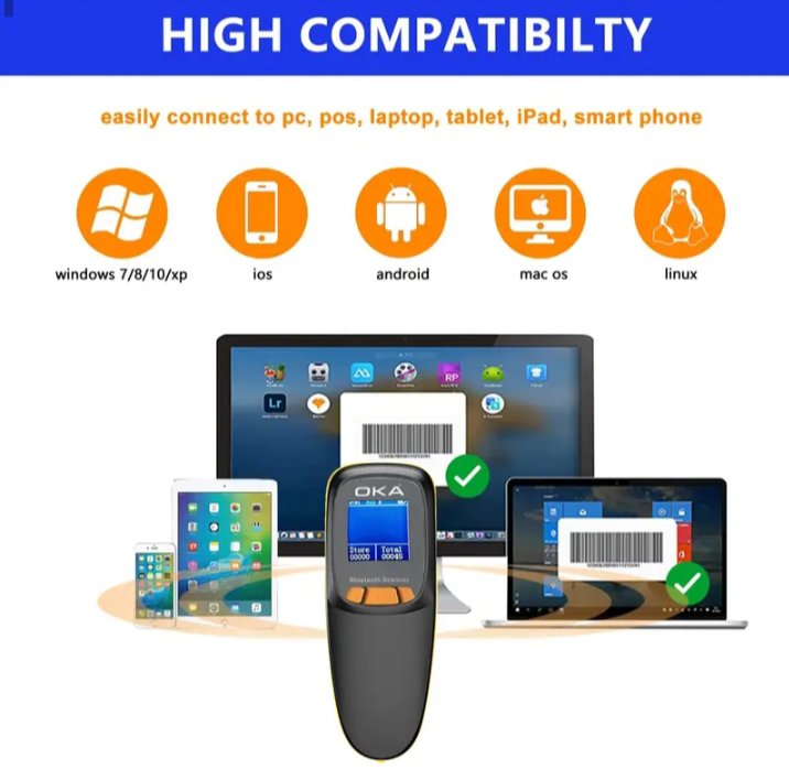 اوكا سكانر ليزر باركود – QR Code وايرلس عالي الجودة به شاشة لاظهار قراءة الباركود ويعمل بالبلوتوث – 2D / موديل OKA HC-300RS