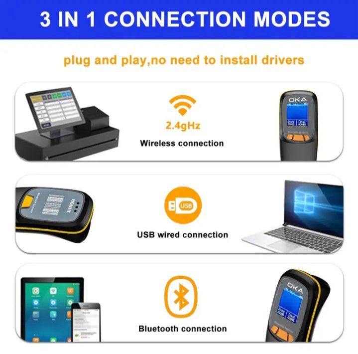 اوكا سكانر ليزر باركود – QR Code وايرلس عالي الجودة يعمل بالبلوتوث – 2D / موديل OKA HC-300R