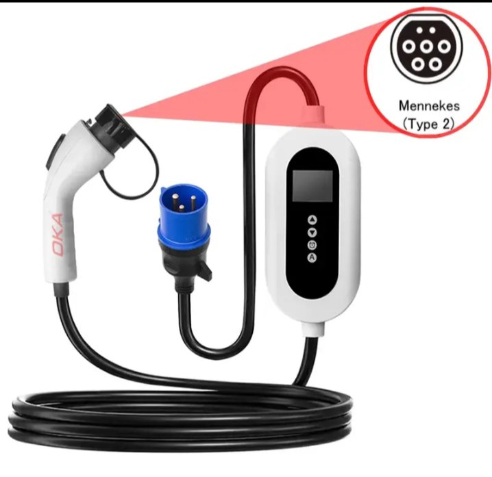 اوكا شاحن سيارة كهربائية متوافق مع جميع السيارات الكهربائية 7 كيلو واط – 32 امبير – 250 فولت يأتي من النوع ( Type2 portable EV charger ) / موديل YYU70