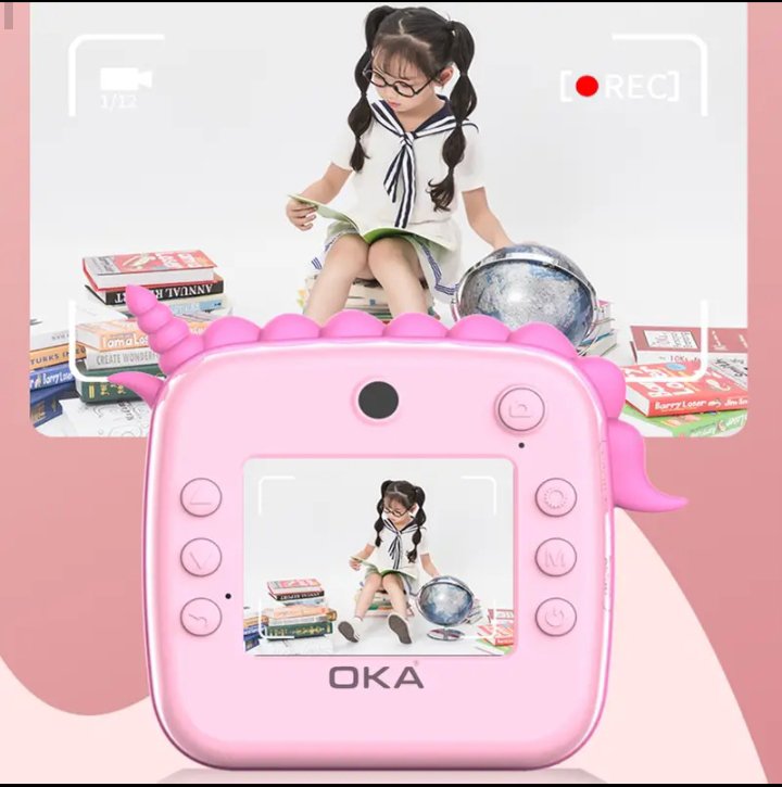 اوكا كاميرا طباعة صور فورية مع طابعة حرارية للاطفال- موديل JK20 / لون وردي