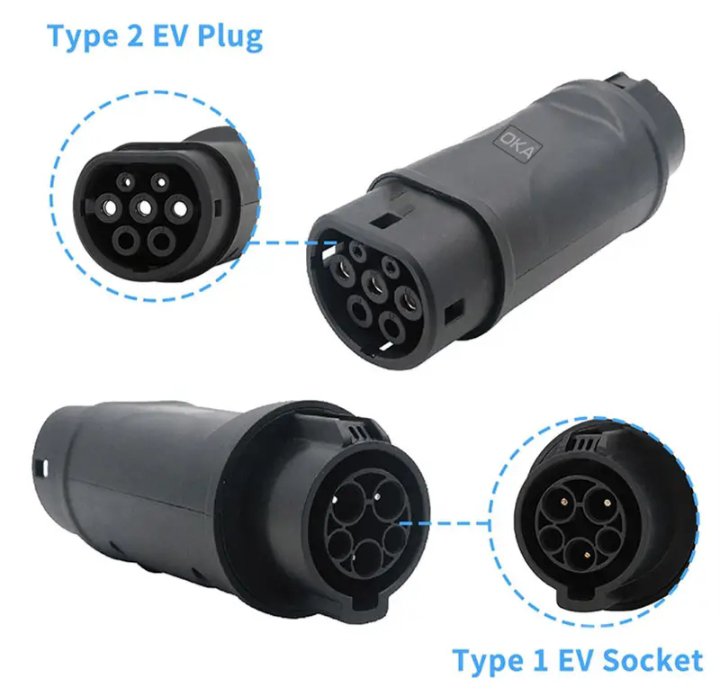 اوكا محول شحن سيارات كهربائية من بروتوكول Type 1 الامريكي و الياباني إلى Type 2 الاوروبي / موديل ( T1-T2 )