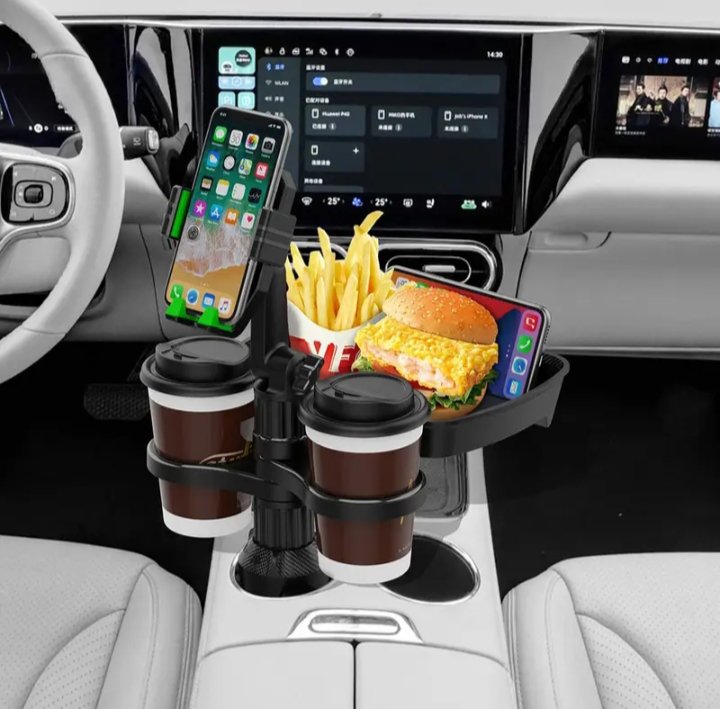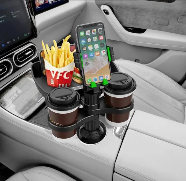 حامل أكواب للسيارة مزود بحامل للموبايل وصينية طعام دوارة قابلة للفصل بالاضافة الي 2 فتحة كوب صغيرة وفتحة اكواب كبيرة / موديل CUP-A06