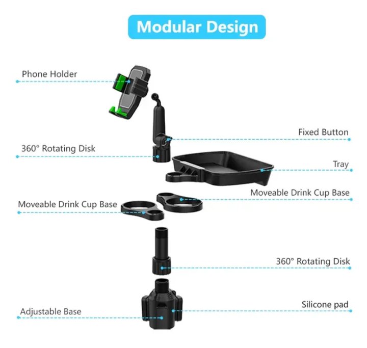 يضمن نظام تثبيت والمقبض بقاء حامل الكوب ثابتًا وآمنًا أثناء القيادة، مما يمنع أي تذبذب أو إمالة.