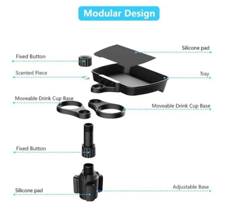 يضمن نظام تثبيت والمقبض بقاء حامل الكوب ثابتًا وآمنًا أثناء القيادة، مما يمنع أي تذبذب أو إمالة.