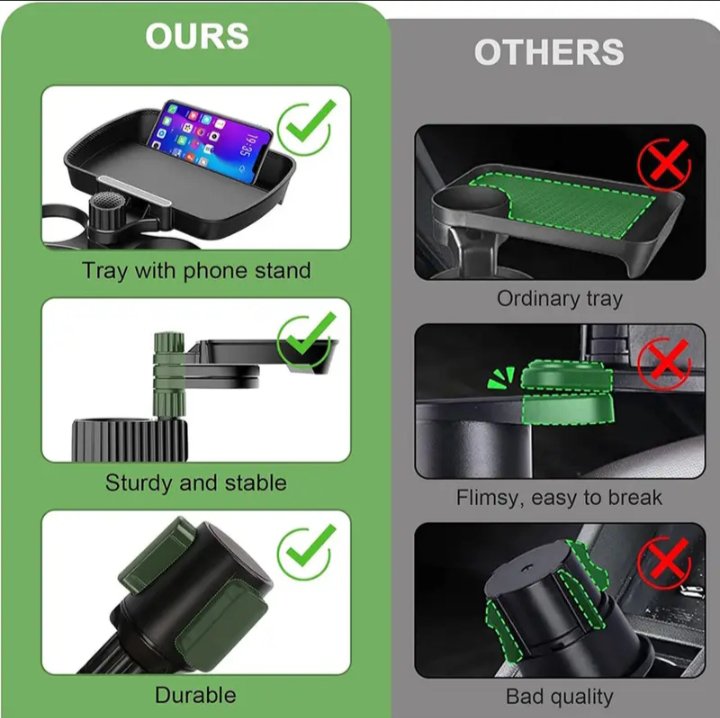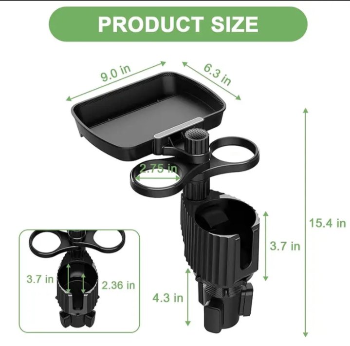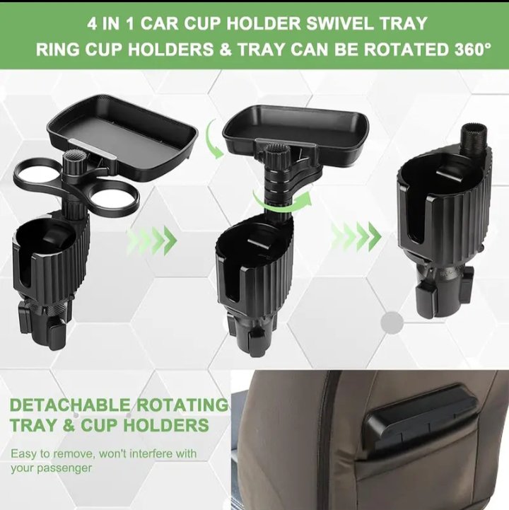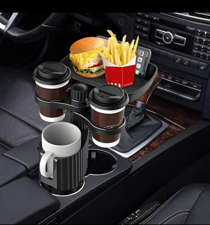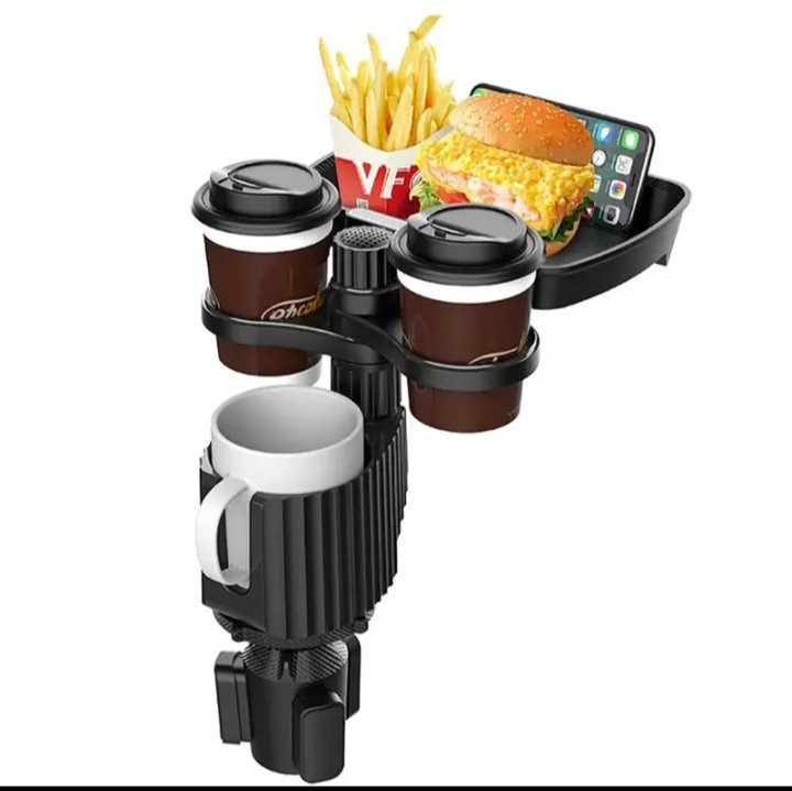 حامل أكواب للسيارة مزود بصينية طعام دوارة قابلة للفصل بالاضافة الي 2 فتحة كوب صغيرة وفتحة اكواب كبيرة / موديل CUP-A05