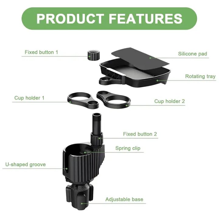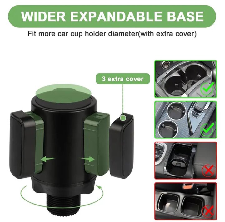 يضمن نظام تثبيت والمقبض بقاء حامل الكوب ثابتًا وآمنًا أثناء القيادة، مما يمنع أي تذبذب أو إمالة.
