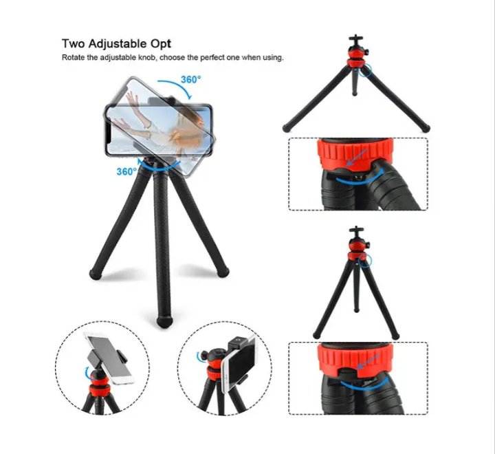 حامل محمول بقاعدة ثلاثية عالي الجودة والتي تناسب معظم الهواتف الذكية ومعظم الكاميرات