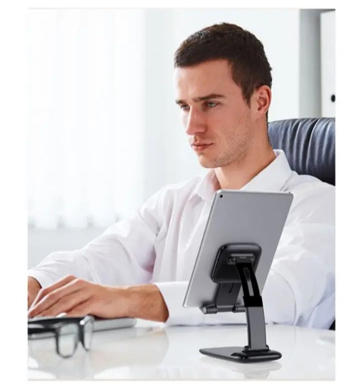 حامل مكتبي للموبايل قابل للطي متوافق مع جميع الأجهزة – B28 – أسود