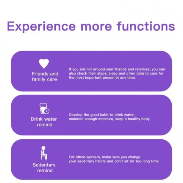 عرض الوقت / الساعة ، الخطوة ، السعرات الحرارية ، المسافة ، وقت النوم ، الصورة ، تشغيل / إيقاف التشغيل – عرض ثلاث علامات