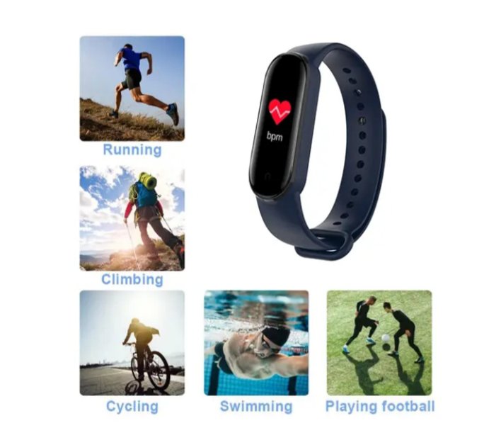 ساعة ذكية M5 احدث اصدار تعمل باللمس متوافقة مع Android و iOS – أزرق