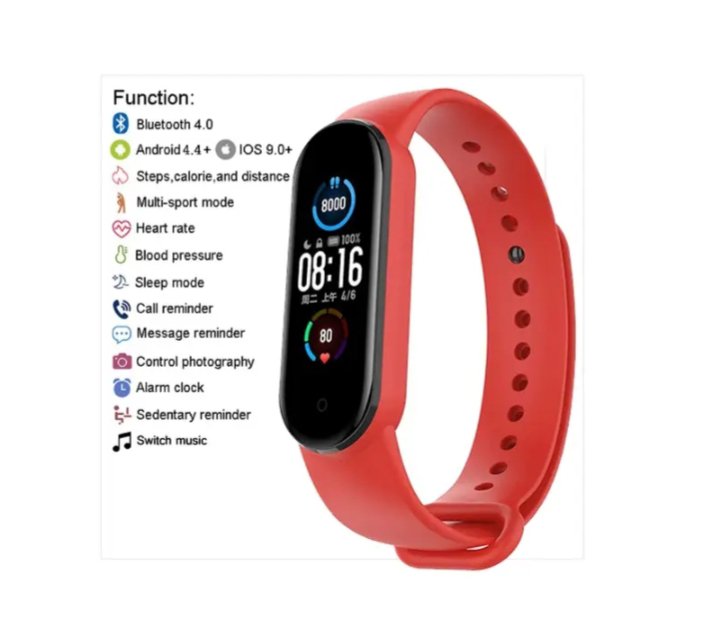 ساعة ذكية M5 احدث اصدار تعمل باللمس متوافقة مع Android و iOS – أحمر