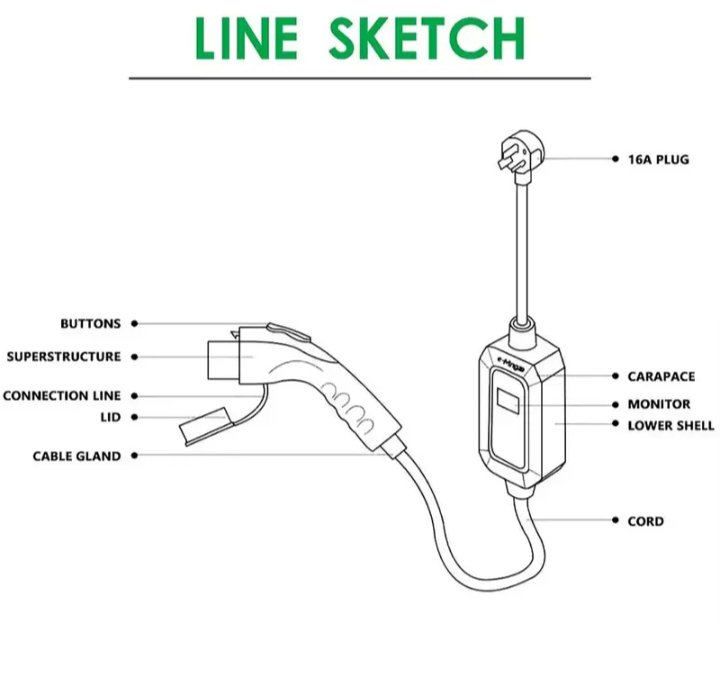 شاحن سيارة كهربائي محمول لجميع السيارات التي تشحن بالكهرباء 3.5 كيلو واط – 16 امبير 250 فولت – 15 متر ( Type 1 ) / موديل D16A