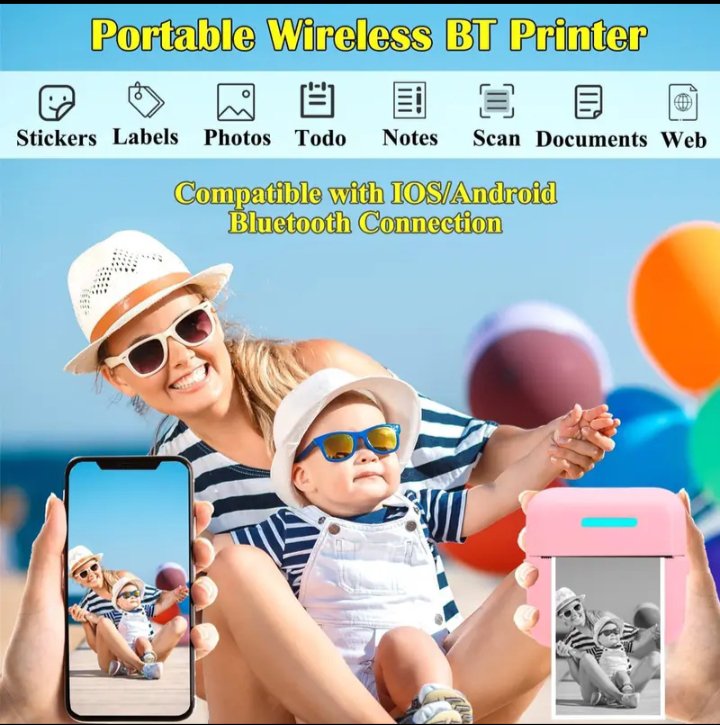 طابعة حرارية محمولة وايرلس للاطفال لطابعة الرسومات والصور – طابعة ملصقات حرارية صغيرة – تعمل من خلال الابلكيشن / موديل BVV10 – لون وردي