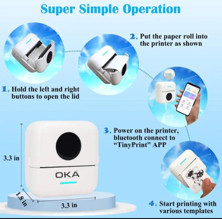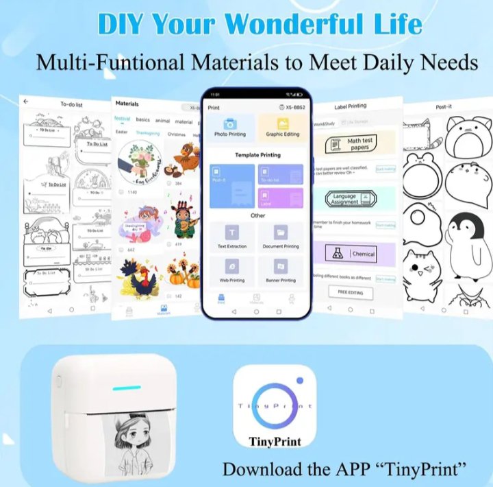 طابعة حرارية محمولة وايرلس للاطفال لطابعة الرسومات والصور – طابعة ملصقات حرارية صغيرة – تعمل من خلال الابلكيشن / موديل BVV10 – لون ابيض