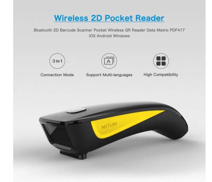 ماسح الباركود اللاسلكي من NETUM – قابل لإعادة الشحن – موديل C750
