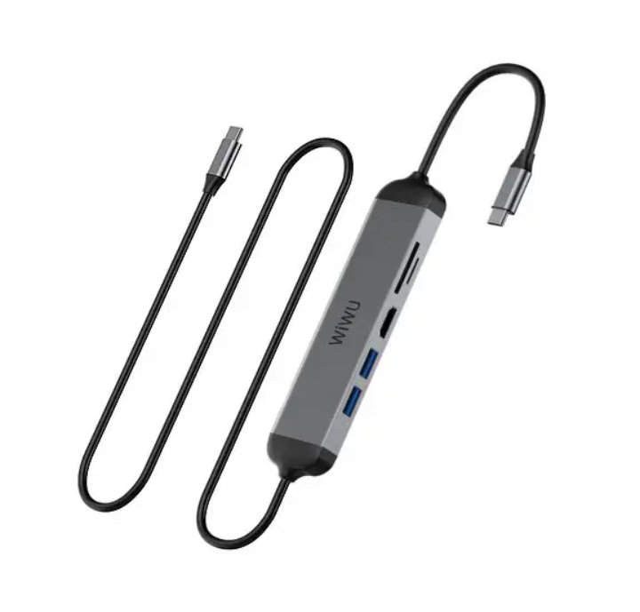 A521H موزع ويوو يو إس بي تايب C محول 5 في 1 مع كابل اطاله تايب سي للشحن 1.6 متر متوافق مع اجهزة الماك بوك