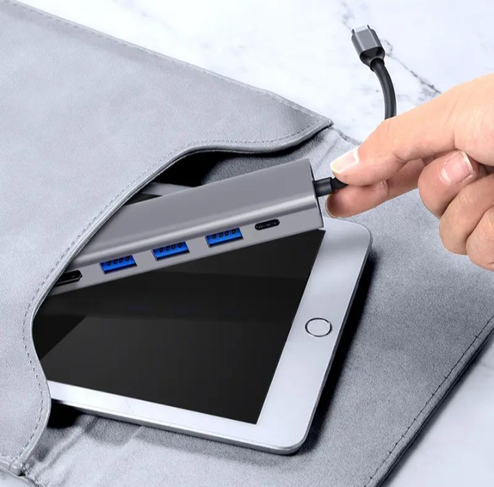 A521H موزع ويوو يو إس بي تايب C محول 5 في 1 مع كابل اطاله تايب سي للشحن 1.6 متر متوافق مع اجهزة الماك بوك