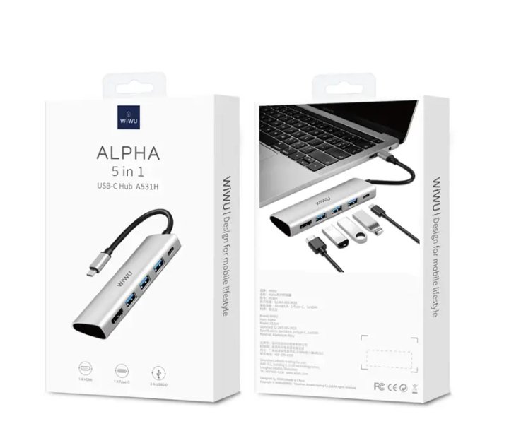 A531H موزع ويوو يو إس بي تايب C محول 5 في 1 متوافق مع اجهزة الماك بوك