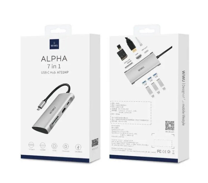 A731HP موزع ويوو يو إس بي تايب C محول 7 في 1 متوافق مع اجهزة الماك بوك