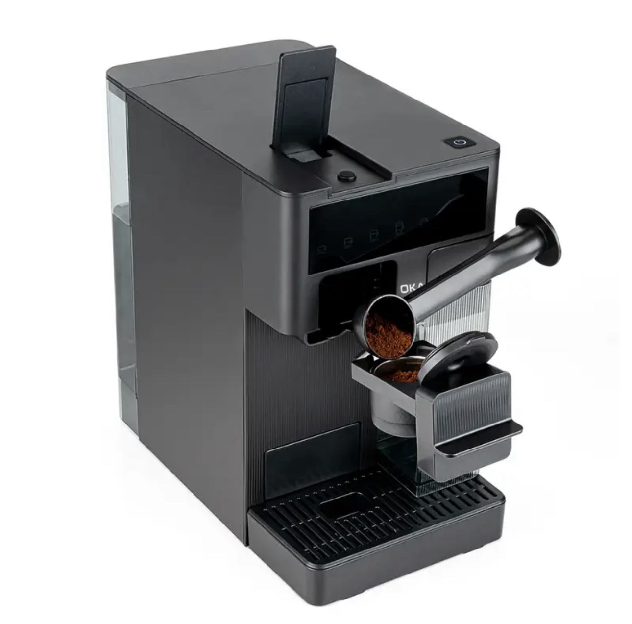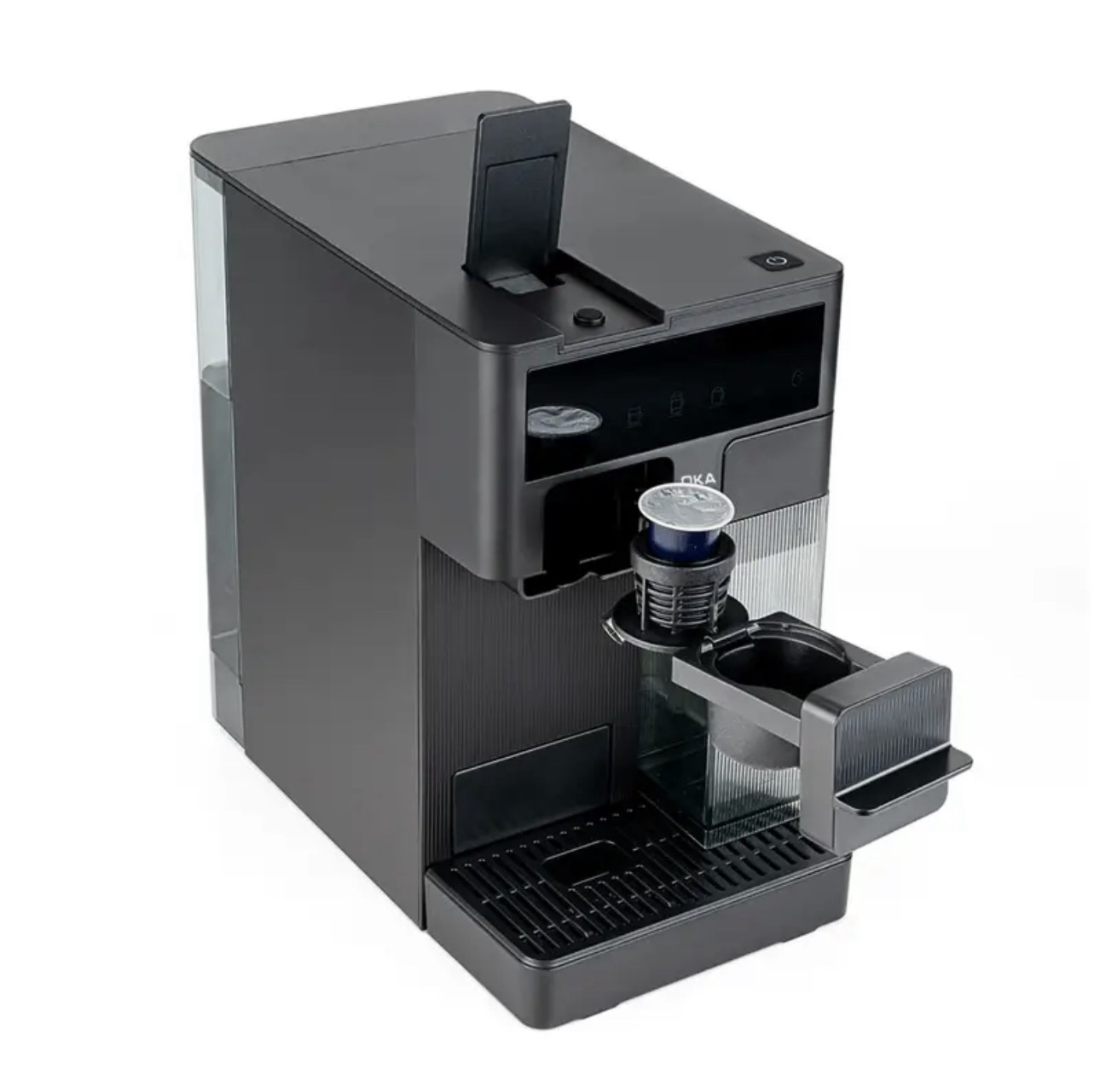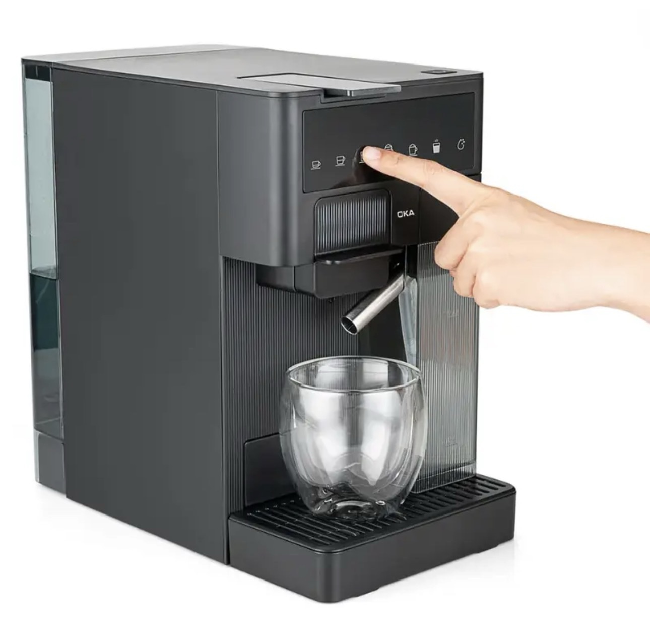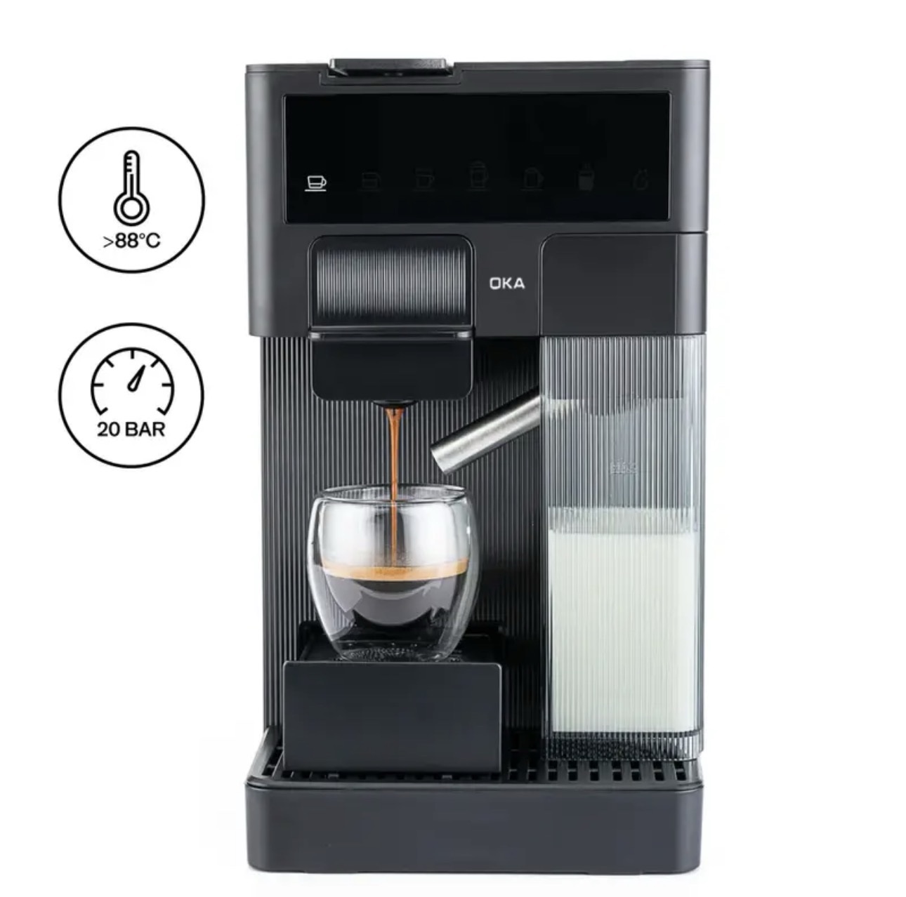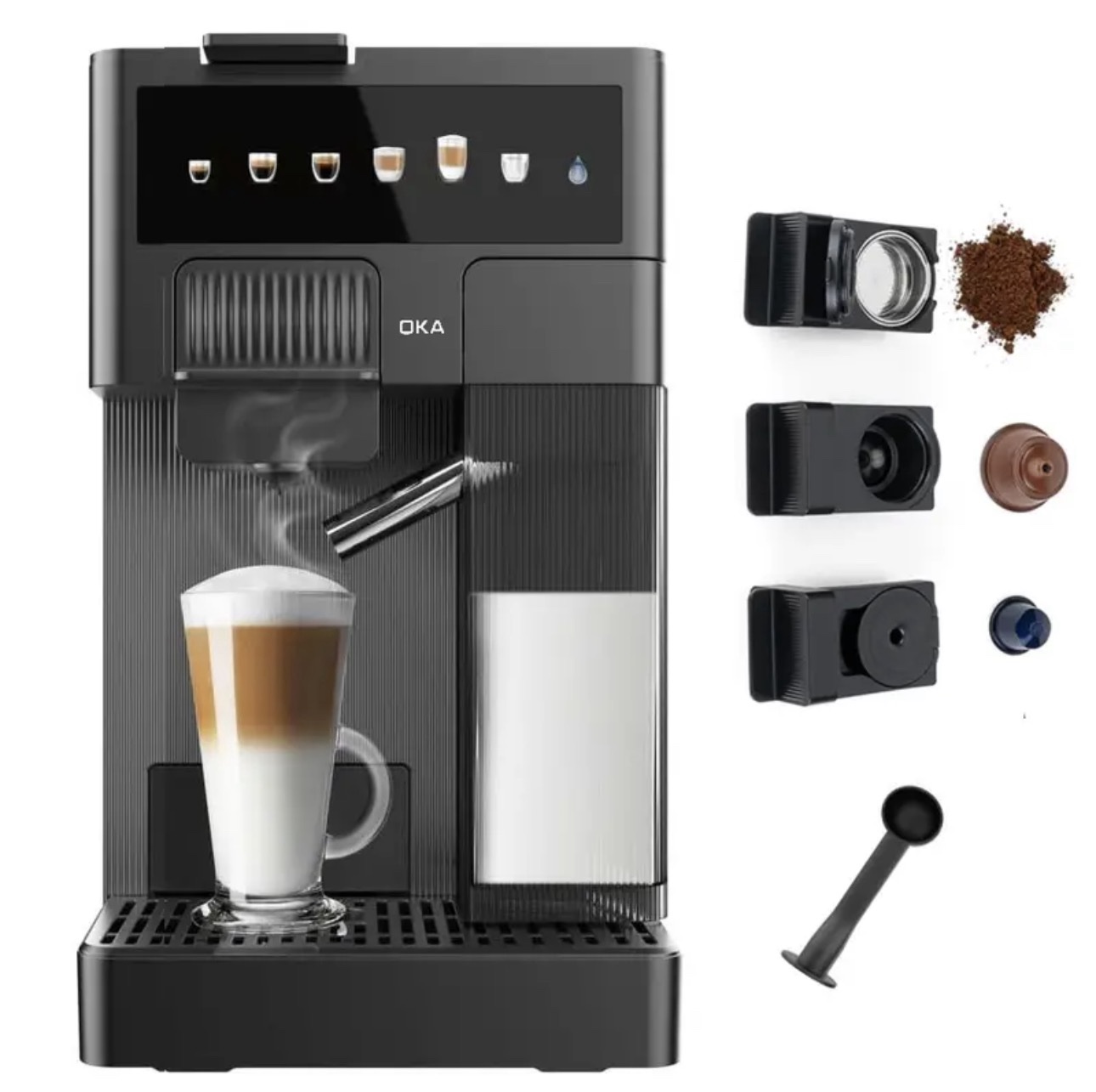 ماكينة قهوة بالكبسولات والبن المطحون من OKA لصناعة الإسبريسو والكابتشينو واللاتيه موديل OKA C100
