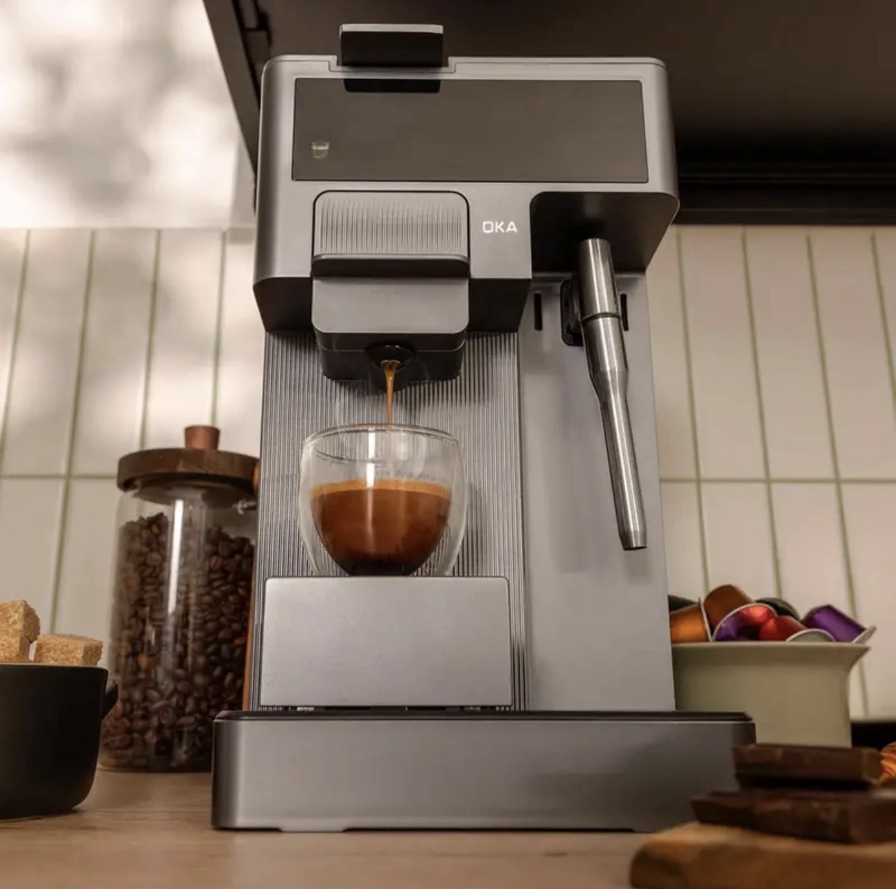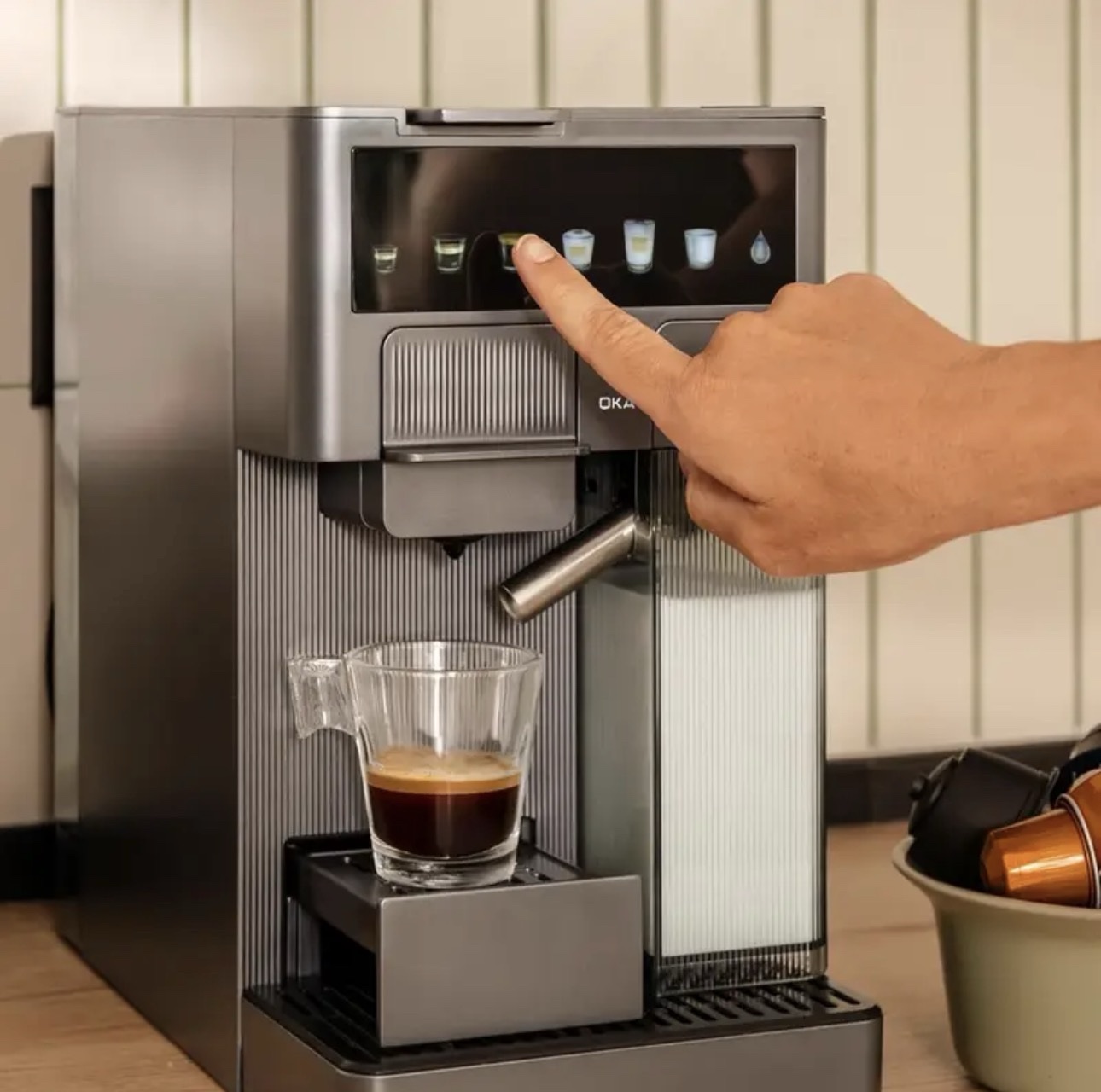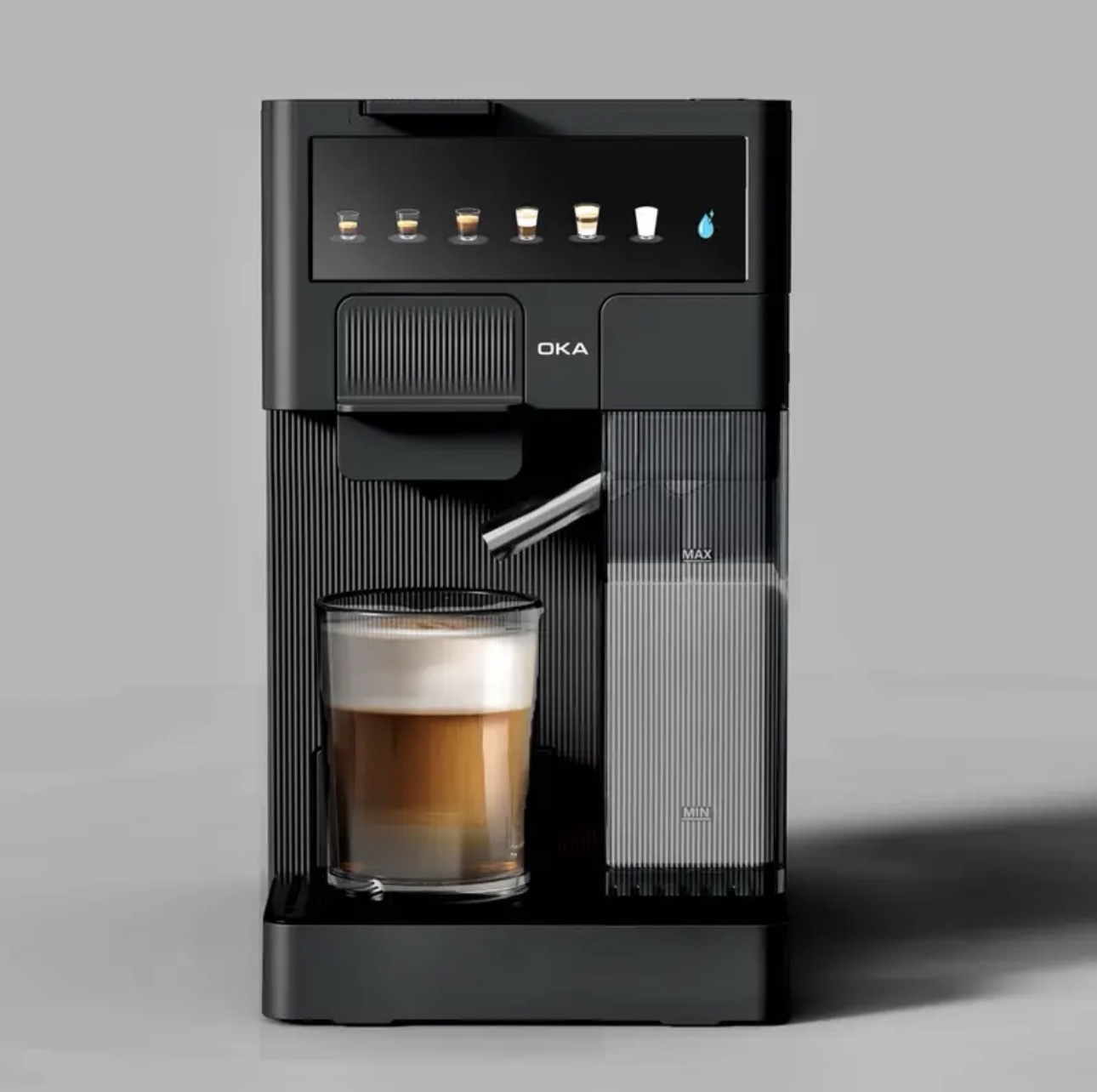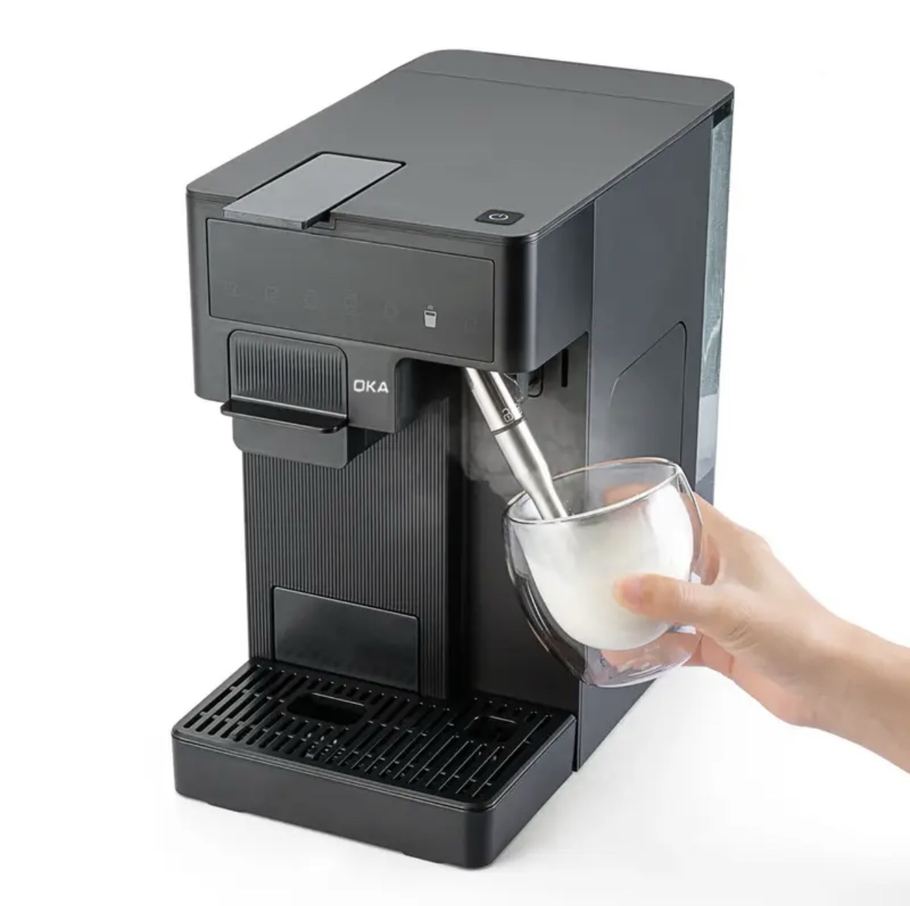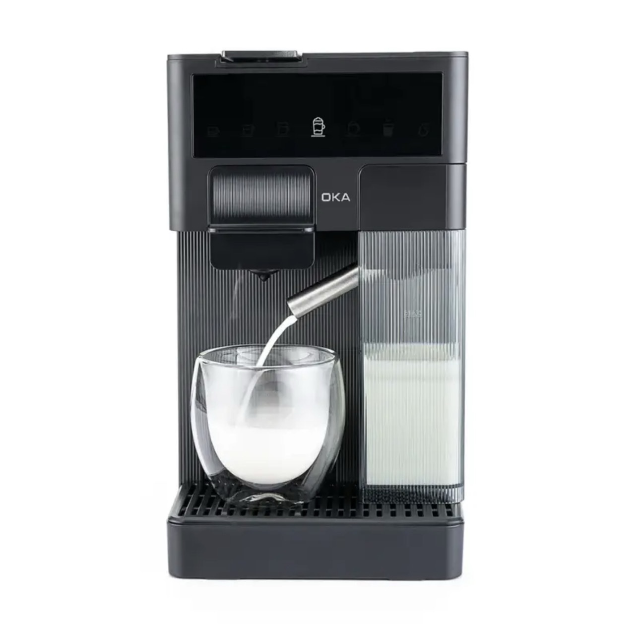 ماكينة قهوة بالكبسولات والبن المطحون من OKA لصناعة الإسبريسو والكابتشينو واللاتيه موديل OKA C100