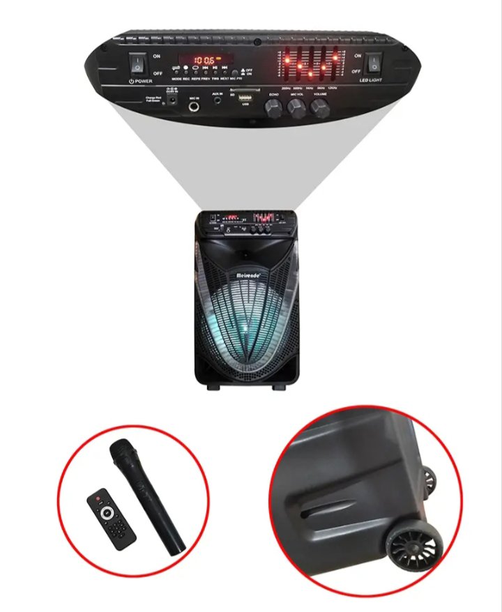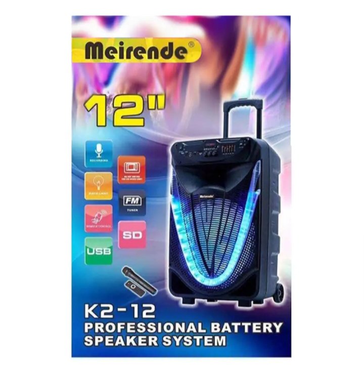 K2-12 سماعة المناسبات والحفلات والرحلات بالبلوتوث ومضخم صوت – راديو – منفذ للفلاشة aux – كارت ميموري – تسجيل – ميكرفون لاسلكي وريموت للتحكم – متنقله بعجلات للجر – اضاءة ليد – سماعة 12 بوصة قابلة للشحن