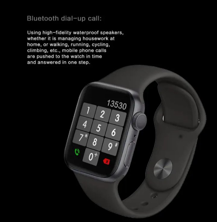 MC57 ساعة ذكية 40MM-SERIES 6 شاشة تتش بالكامل تدعم اللغة العربية تقوم بقياس نسبة الأكسجين في الدم ونبطات القلب وضغط الدم وتنبيهات المكالمات والرسائل متوافقة مع Android و IOS لون أسود