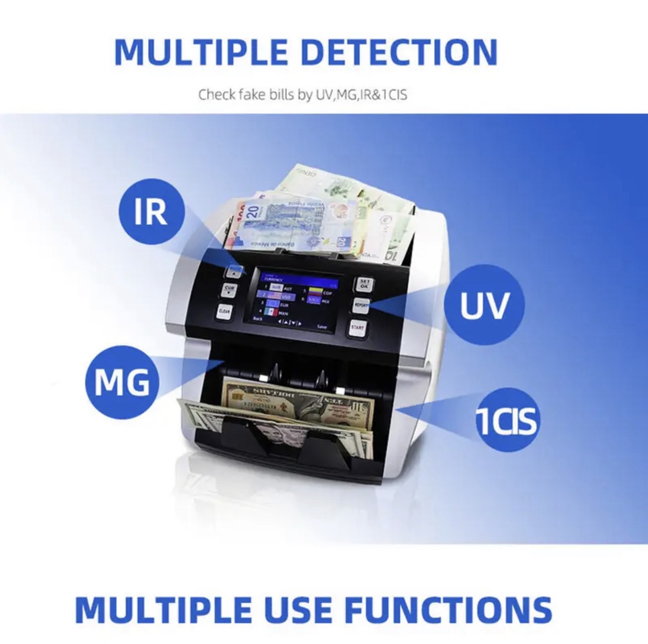 تكشف تزوير العديد من العملات المحلية والدولية.