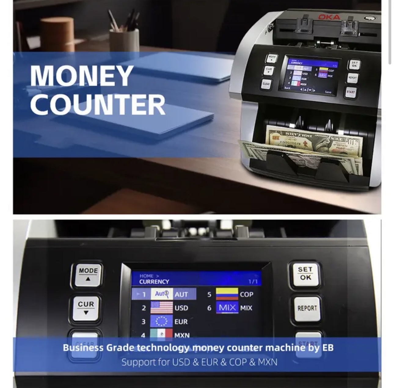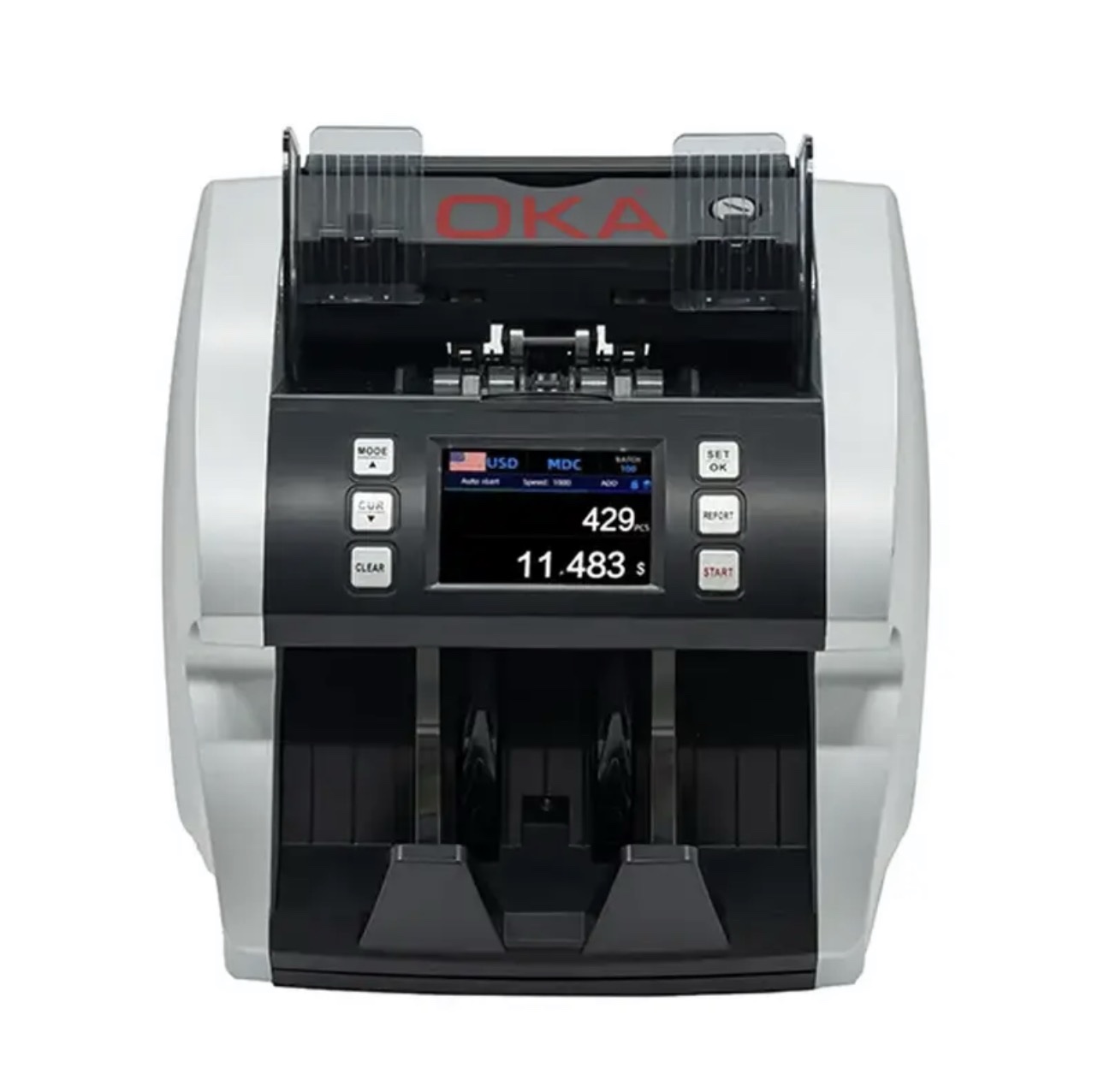 ماكينة عدّ وفرز العملات OKA لعدّ وفرز العملات المختلفة وكشف التزوير (الدولار – اليورو – اليوان الصيني – الليرة التركية) موديل OKA-MIX101