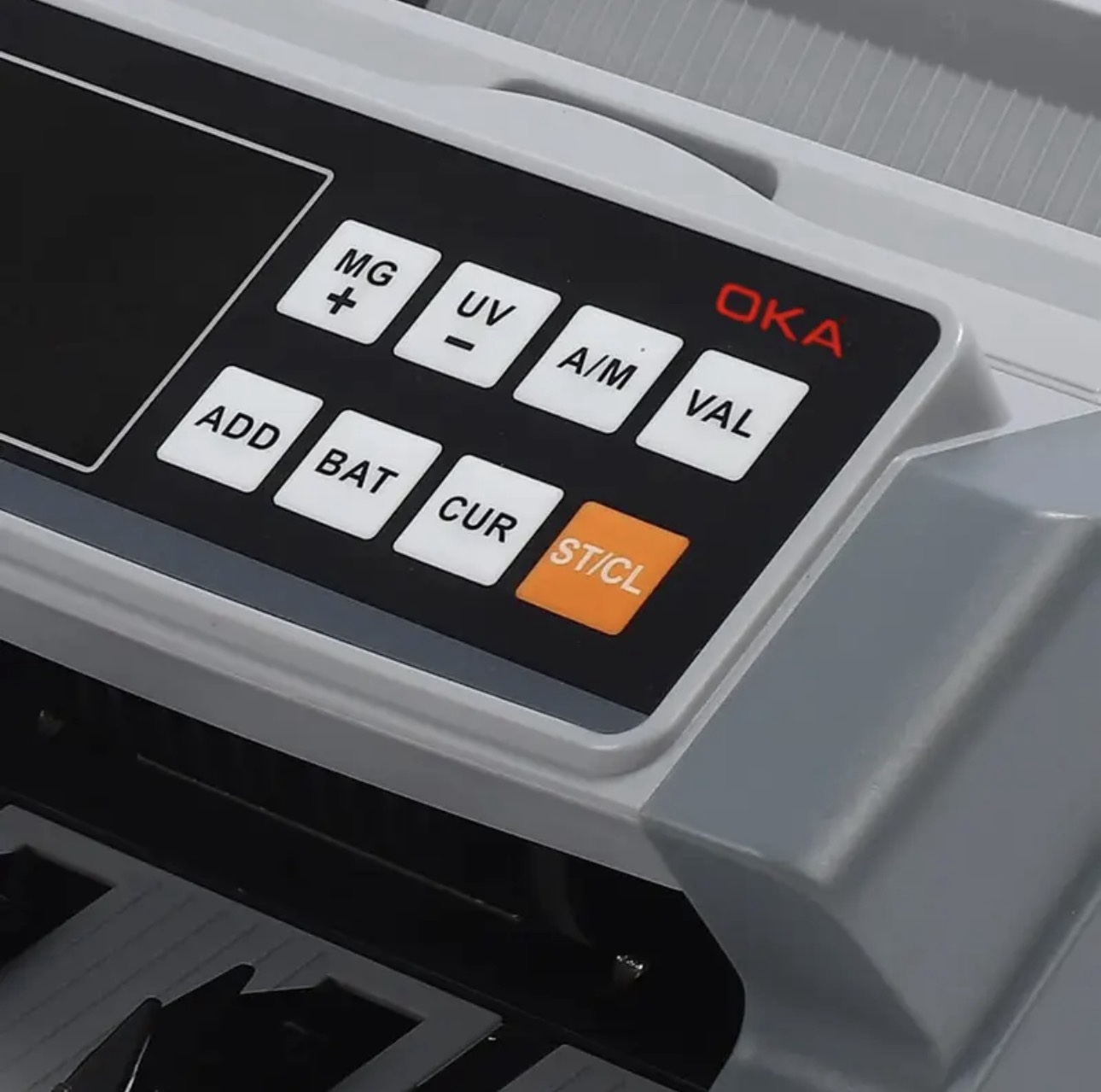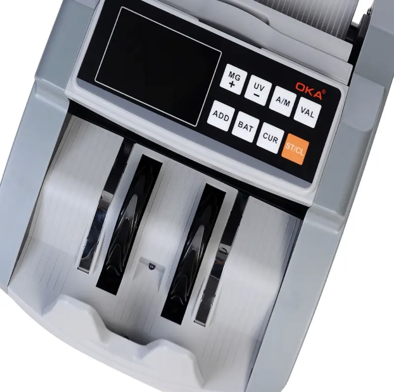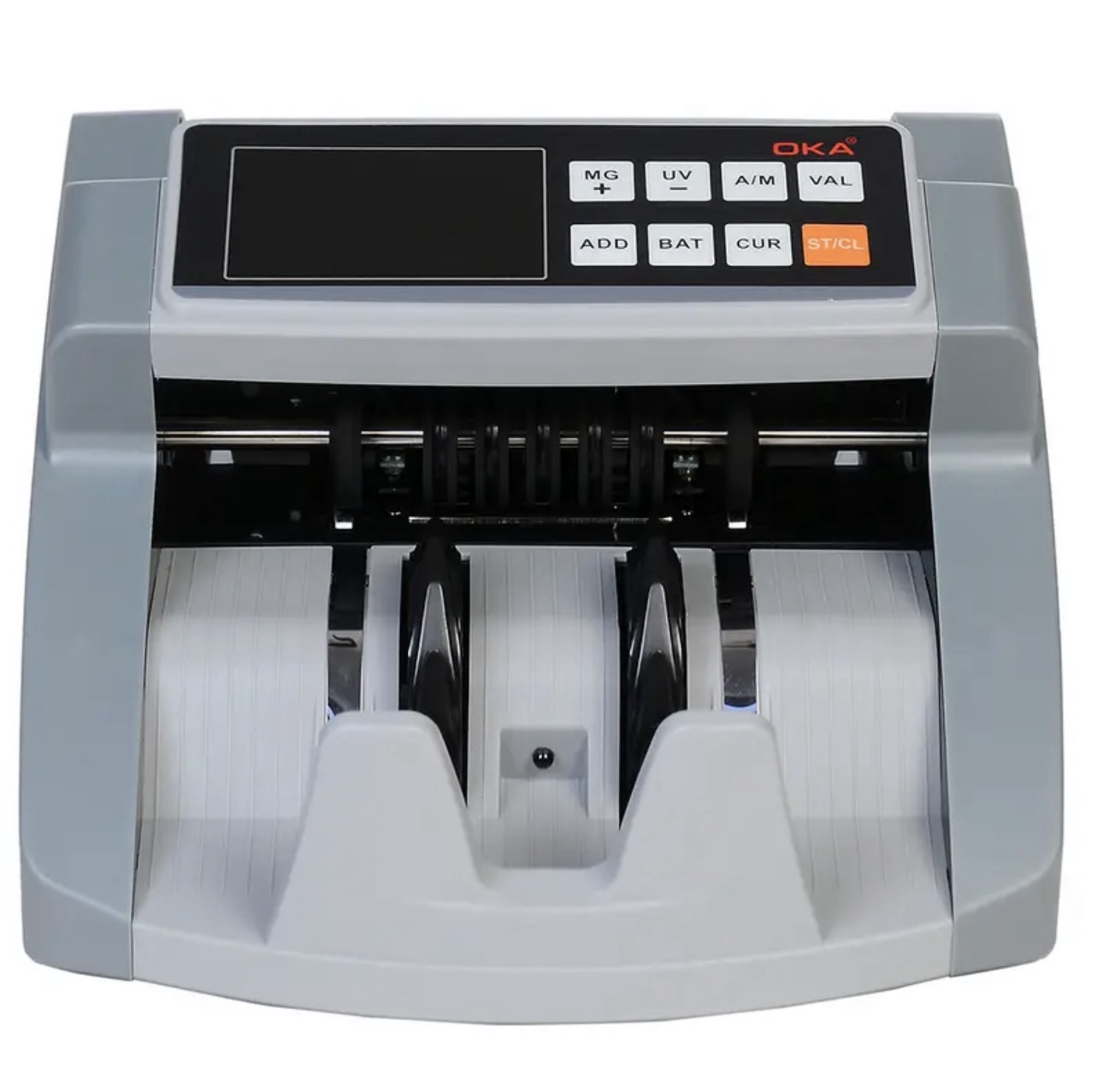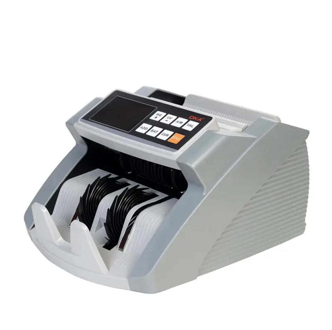 ماكينة عدّ وكشف تزوير النقود OKA مزودة بشاشة خارجية رقمية موديل 2100