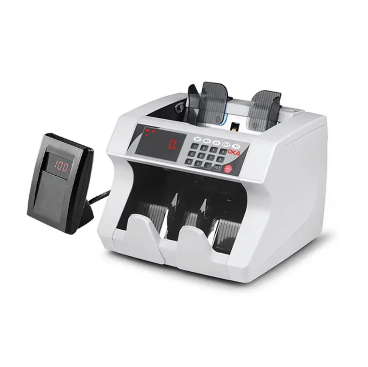 ماكينة عدّ وكشف تزوير النقود OKA مزودة بشاشة خارجية رقمية موديل 6006
