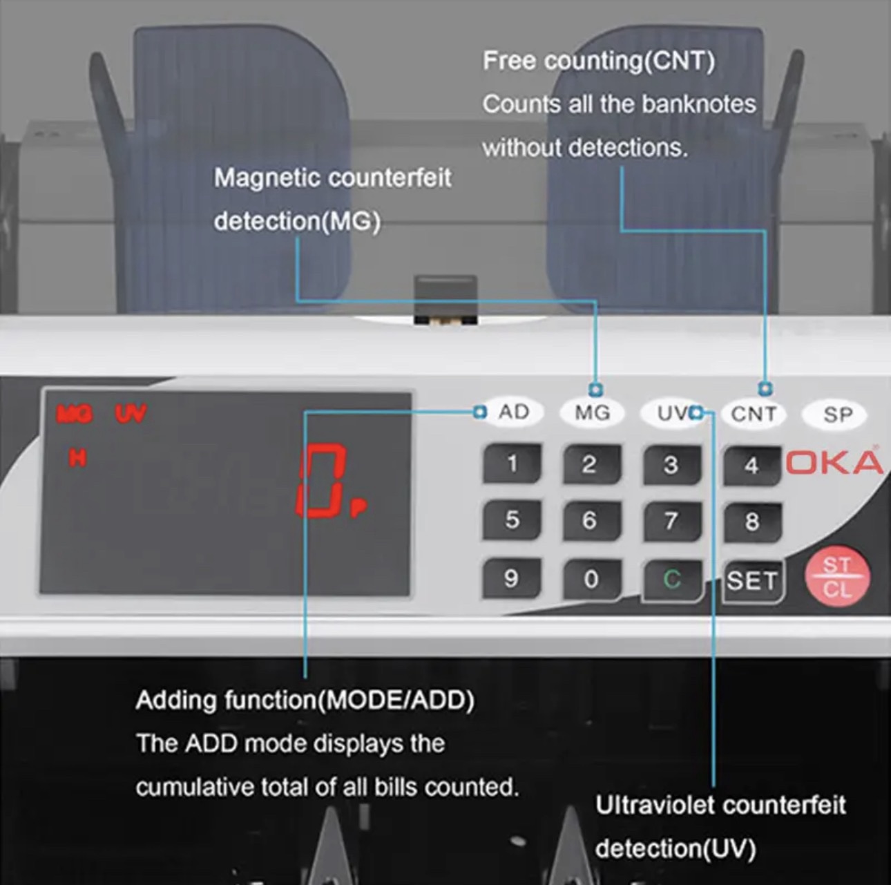 ماكينة عدّ وكشف تزوير النقود OKA
